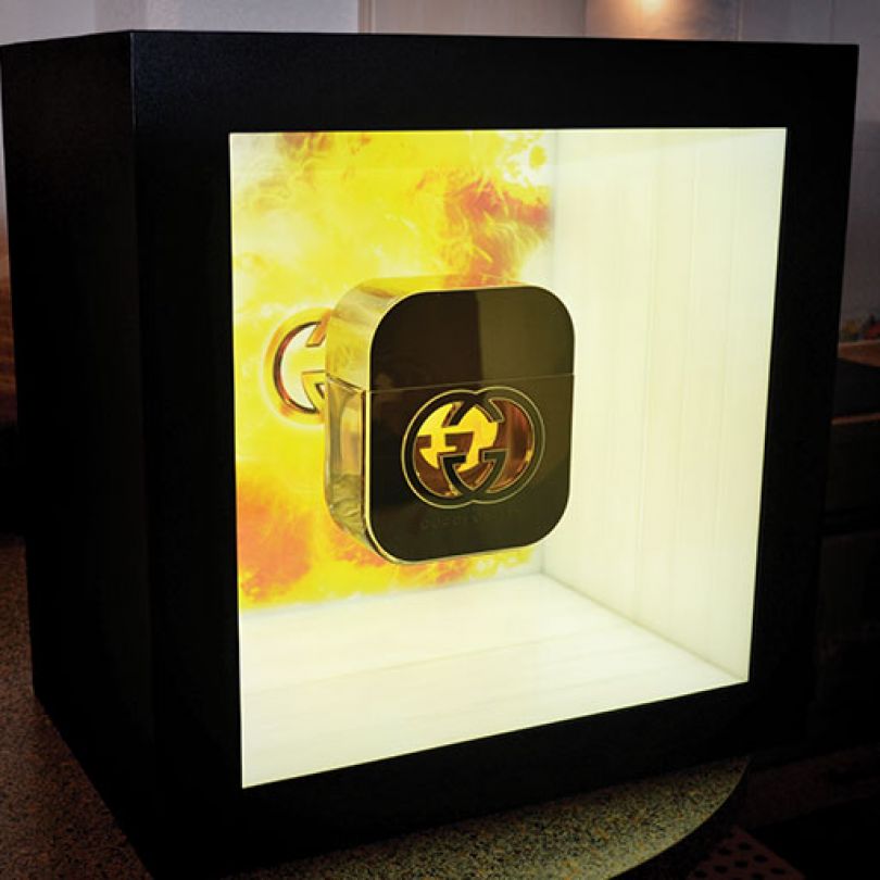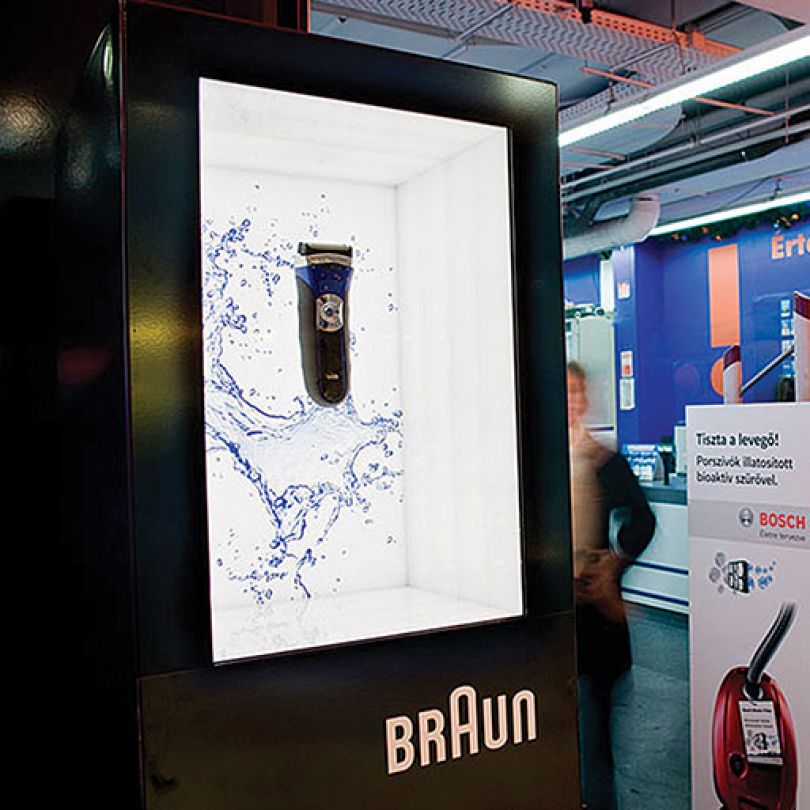 Unsere Installation lässt die Objekte in einem geschlossenen Raum schwebend erscheinen. Die dadurch erweckte Neugierde, Herausforderung der Vorstellungskraft und Mystik erregt Aufmerksamkeit und fördert die Suche nach einer Lösung. Dies ergibt eine tiefe, dauerhafte Prägung und ruft positive Assoziationen zum Objekt hervor.