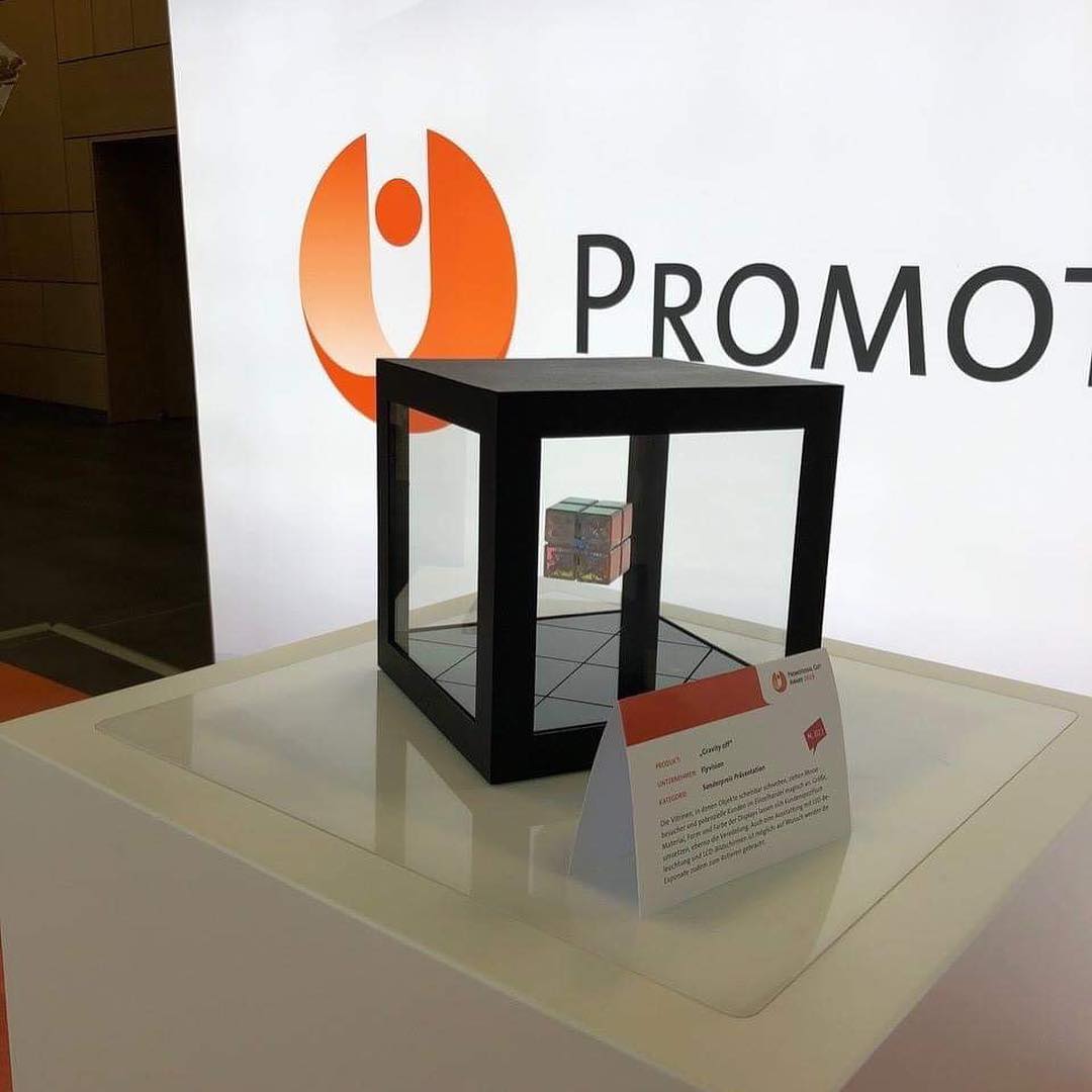 Nous avons personnellement remporté le prestigieux prix du cadeau promotionnel 2019 pour notre magnifique vitrine flottante Rubik's Cube.